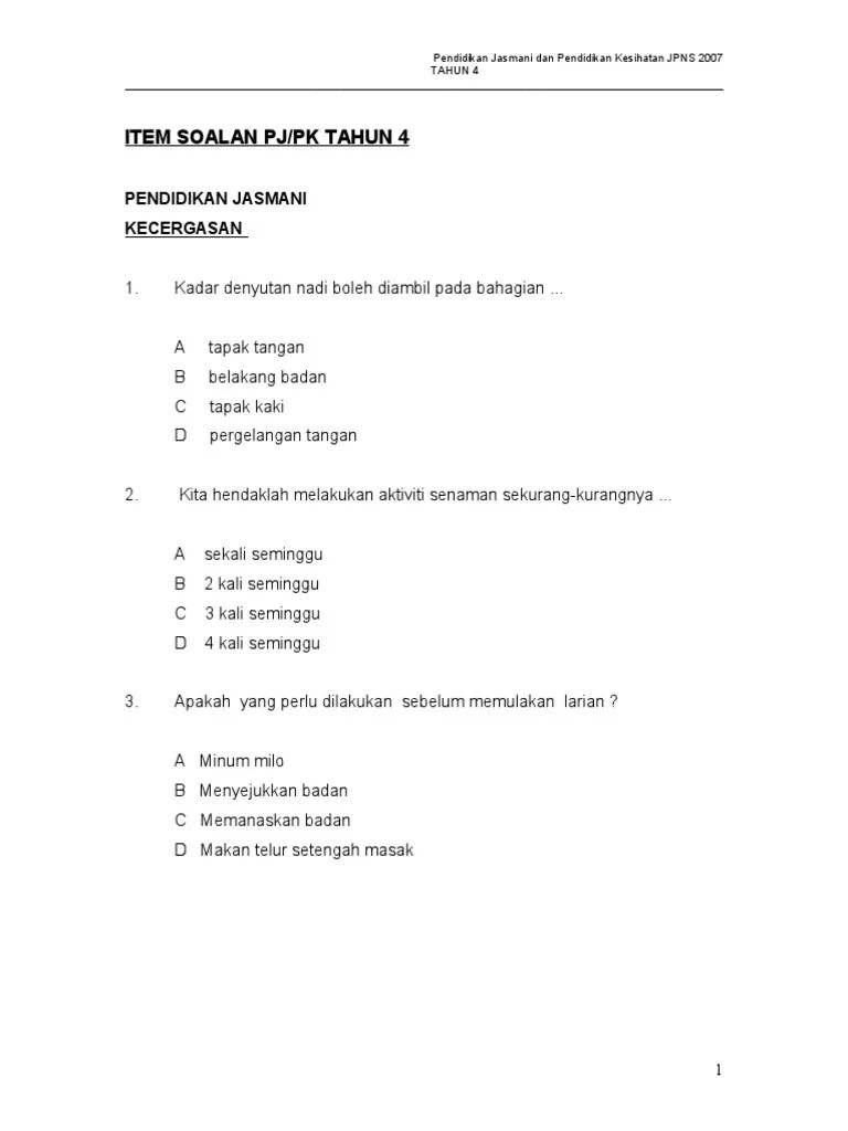 Mengandungi beberapa set soalan untuk kemudahan guru & pelajar membuat rujukan dan pengukuhan. Kongsikan kepada rakan guru pelbagai mata pelajaran. Bahan yang terdapat di sini memenuhi. Kongsikan kepada rakan guru semoga bermanfaat. 1 sistem reproduktif berfungsi melahirkan zuriat. ١ ربيع الأول ١٤٤٣ هـ. Pendidikan jasmani & pendidikan kesihatan tahun 5.doc. Himpunan soalan akhir tahun pendidikan kesihatan tahun 5. Pelajar dan guru dapat memanfaatkan penggunaan ict bagi . Soalan pjk tahun 3 via slideshare kertas soalan pendidikan moral tahun 5 kssr via slideshare soalan latihan unit 9. Berikut merupakan koleksi soalan peperiksaan pj bagi sekolah rendah. Terima kasih kepada semua kerana sentiasa menyokong cikgu ayu untuk teruskan berkongsi pelbagai bahan pendidikan disini. ٧ جمادى الآخرة ١٤٤٣ هـ.